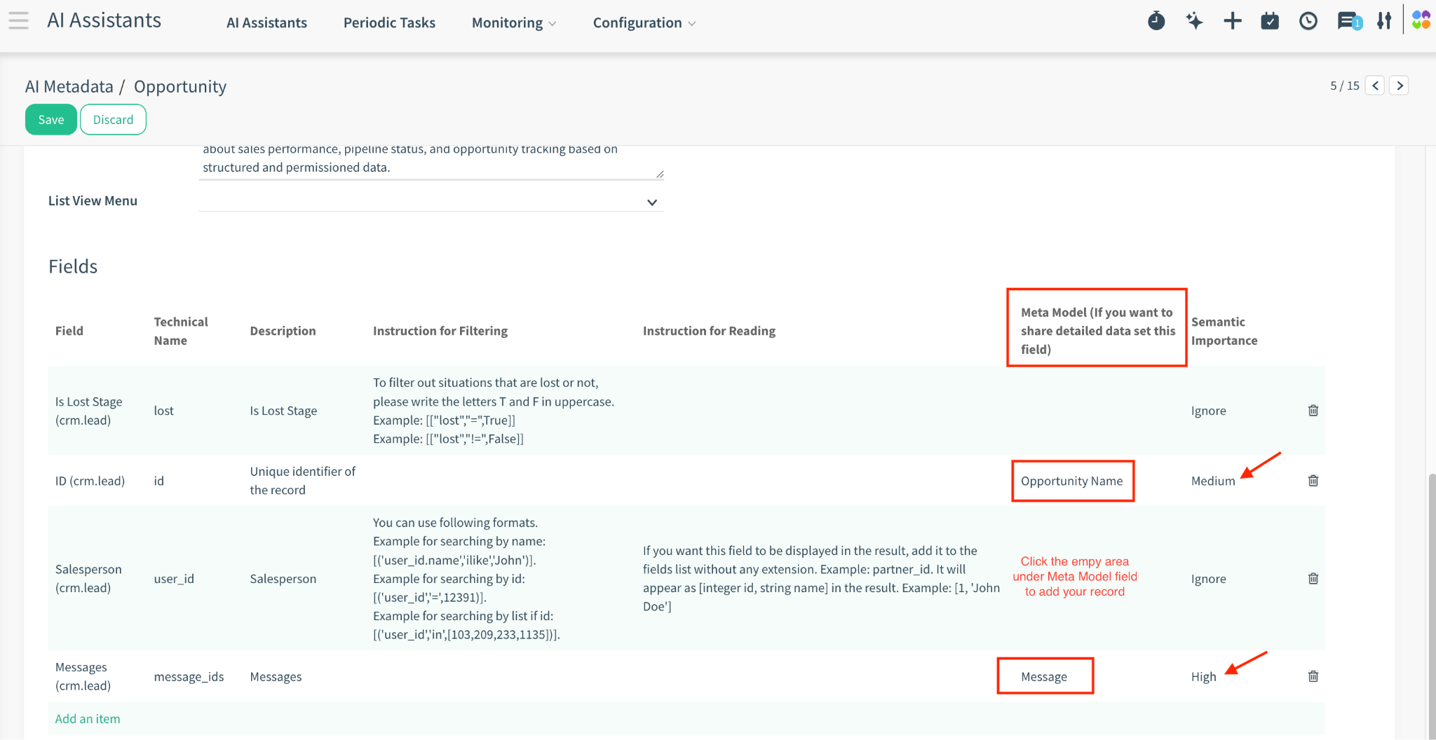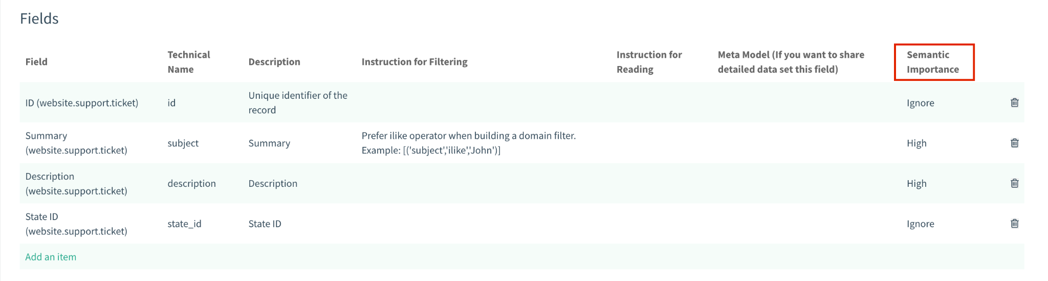 TIP: Using Meta Models (Relational Data): If you select a relational field (Many2one) that points to another Semantic Model (a “Meta Model”), the system calculates importance using an Average Logic: (Parent Importance + Child Importance) / 2