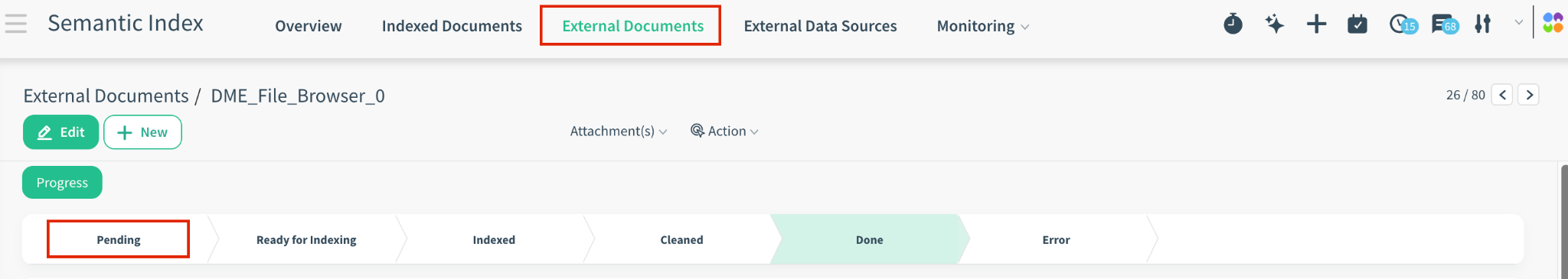 3. Result: Creates a record in the External Documents menu with status “Pending”.