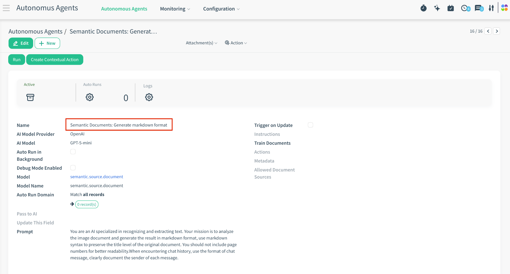 Check the logs to see if the Autonomous Agent (Semantic Documents: Generate markdown format) is hitting any limits or errors (especially for huge scanned PDFs).
